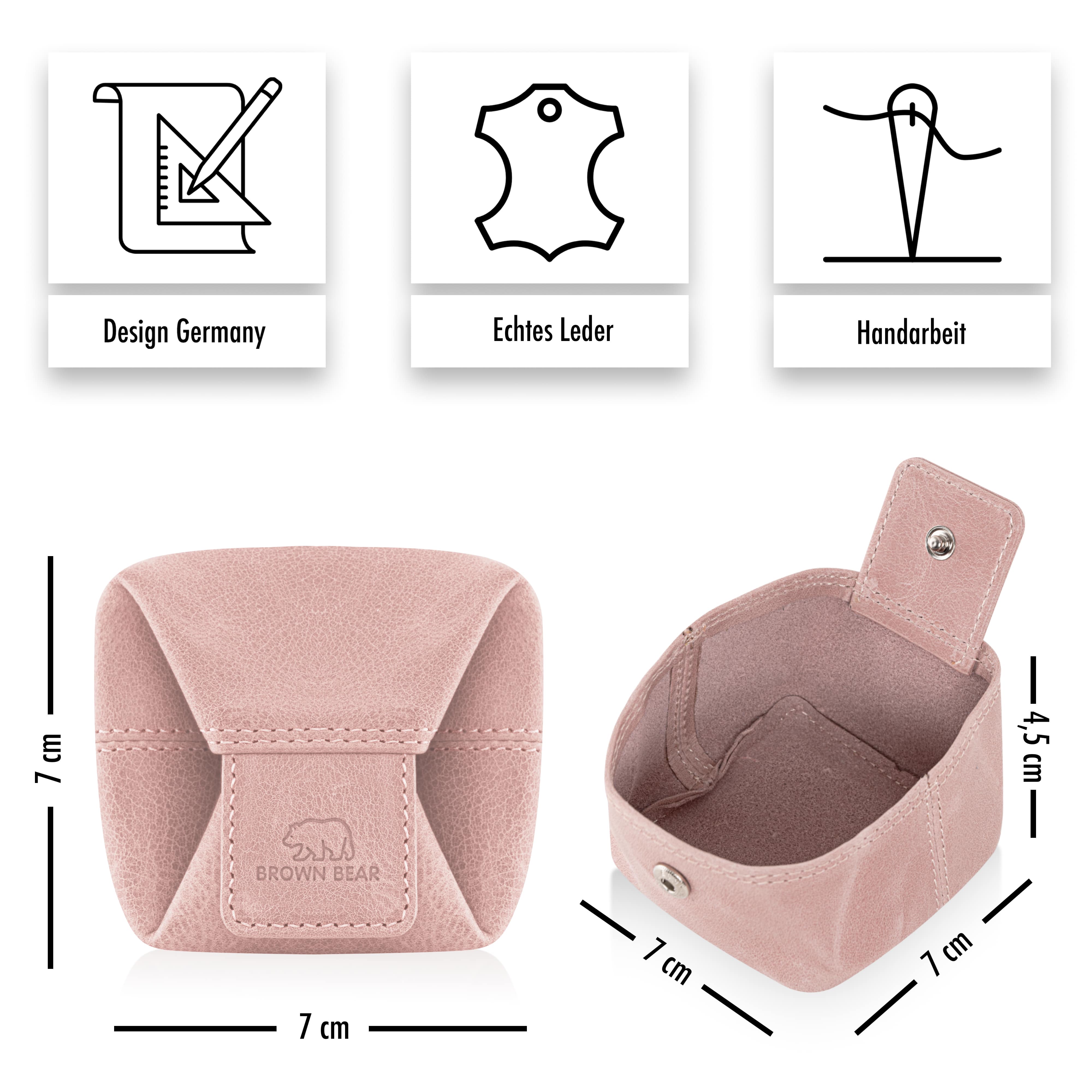 Mit ihren handlichen Maßen von ca. 7 × 7 × 2 cm ist die BROWN BEAR Münzbörse ein echtes Raumwunder.