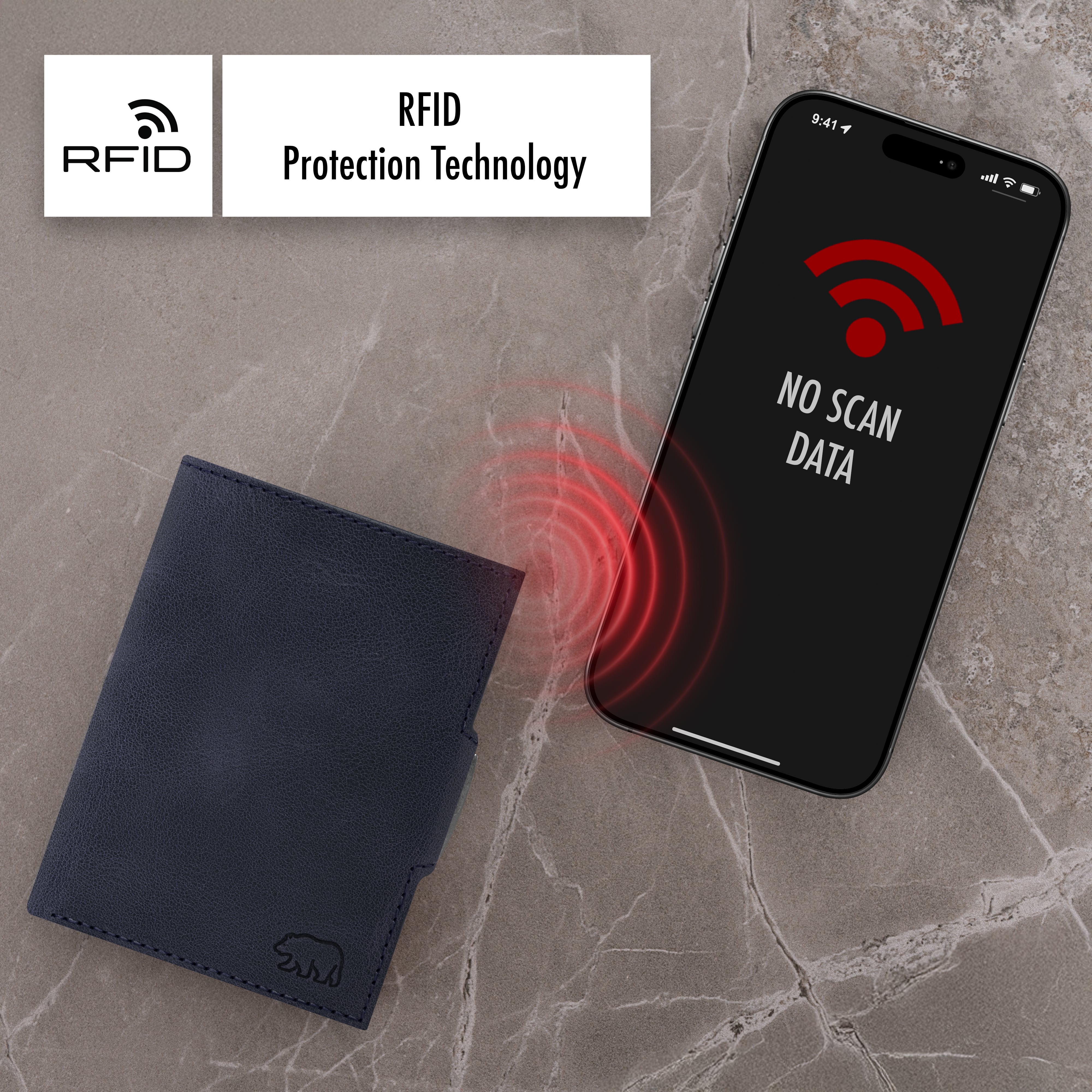 Ein integrierter RFID-Blocker schützt Kredit-, Bank- und Ausweiskarten zuverlässig vor unbefugtem Auslesen. So bleiben Ihre Daten sicher – ob im Alltag, im Café oder unterwegs.