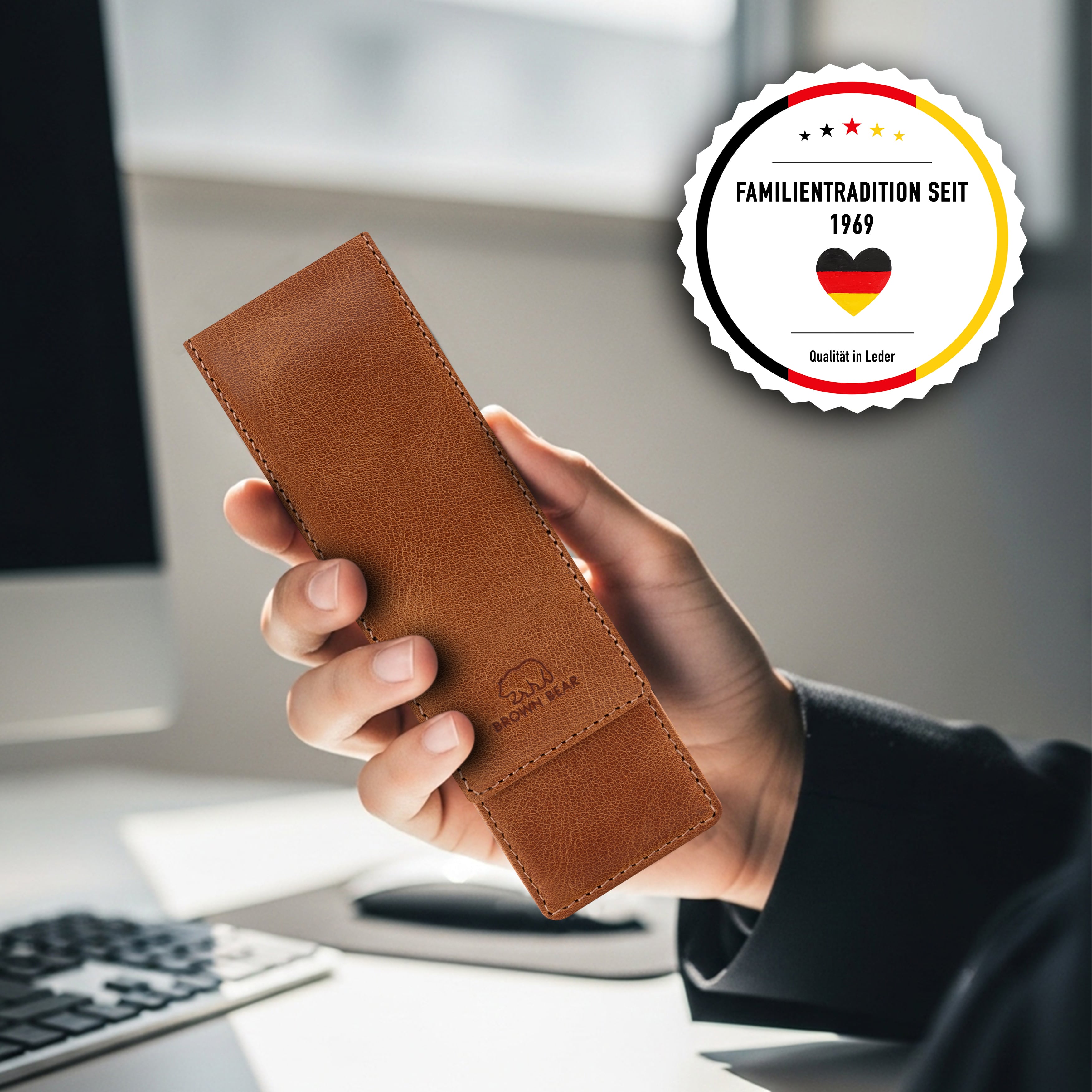 p>Dieses edle Schreibetui aus echtem Rindsleder ist die perfekte Wahl für alle, die Qualität und Stil schätzen. Es eignet sich ideal für Kugelschreiber, Füllfederhalter, Druckbleistifte oder Rollerball und wird in Europa handgefertigt.