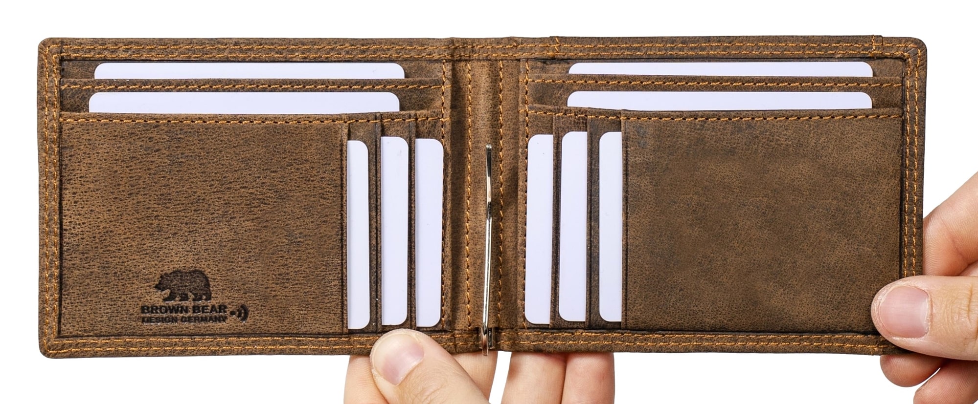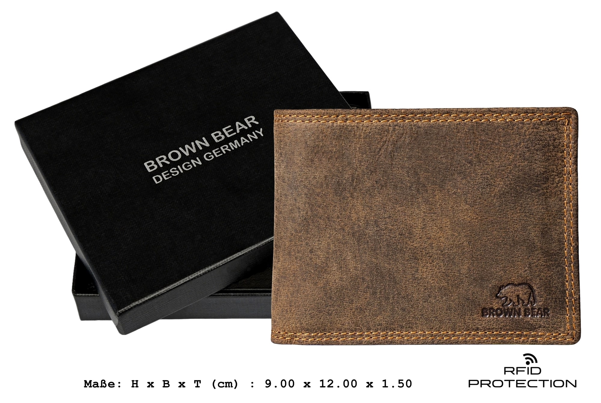Die Geldbörse hat die Maße von ca. 12 x 9 x 1,50 cm (B x H x T) und passt somit in jede Tasche oder Hosentasche. Sie wird in einem eleganten Brown Bear Design Germany Geschenkkarton geliefert, sodass sie sich auch ideal als Geschenk eignet.
