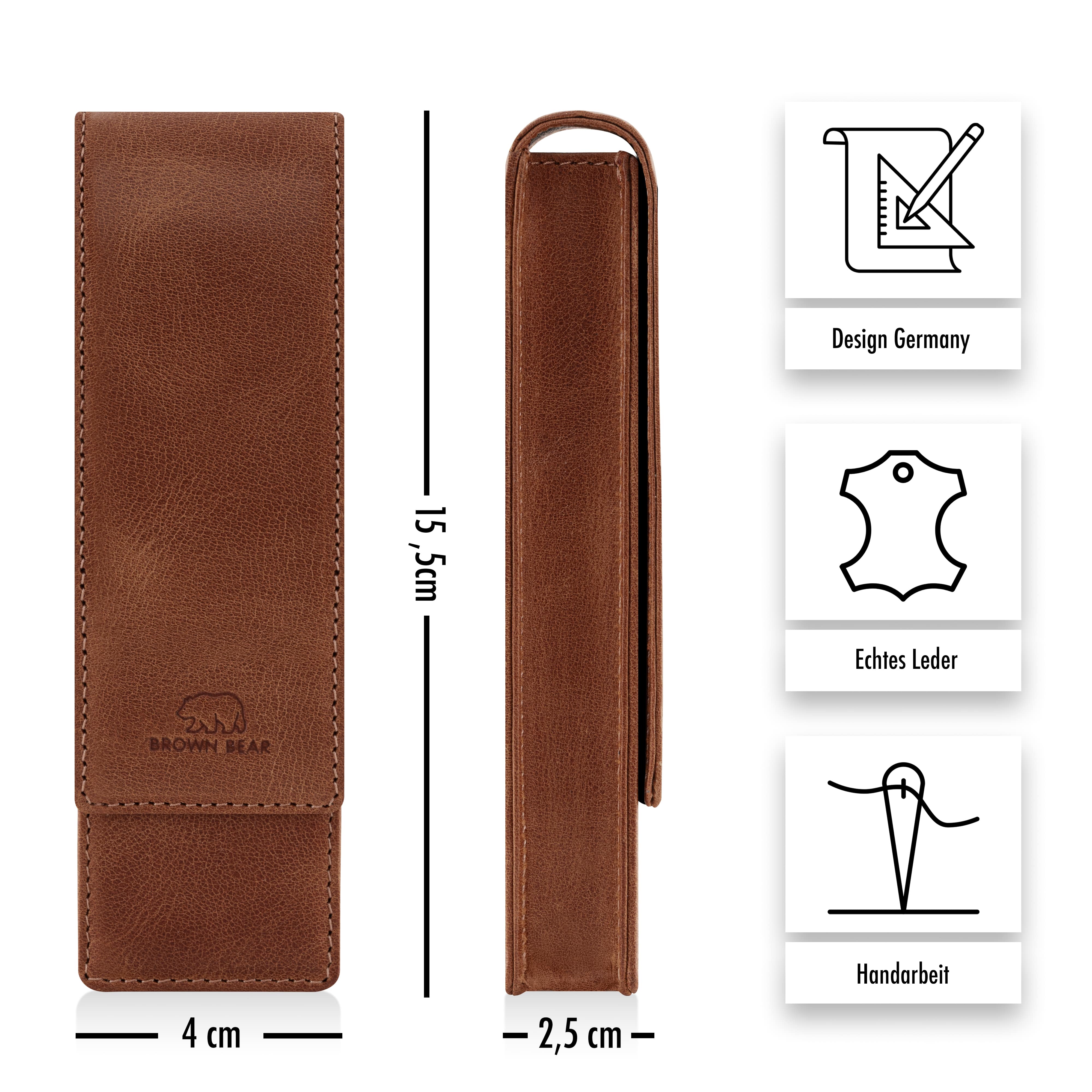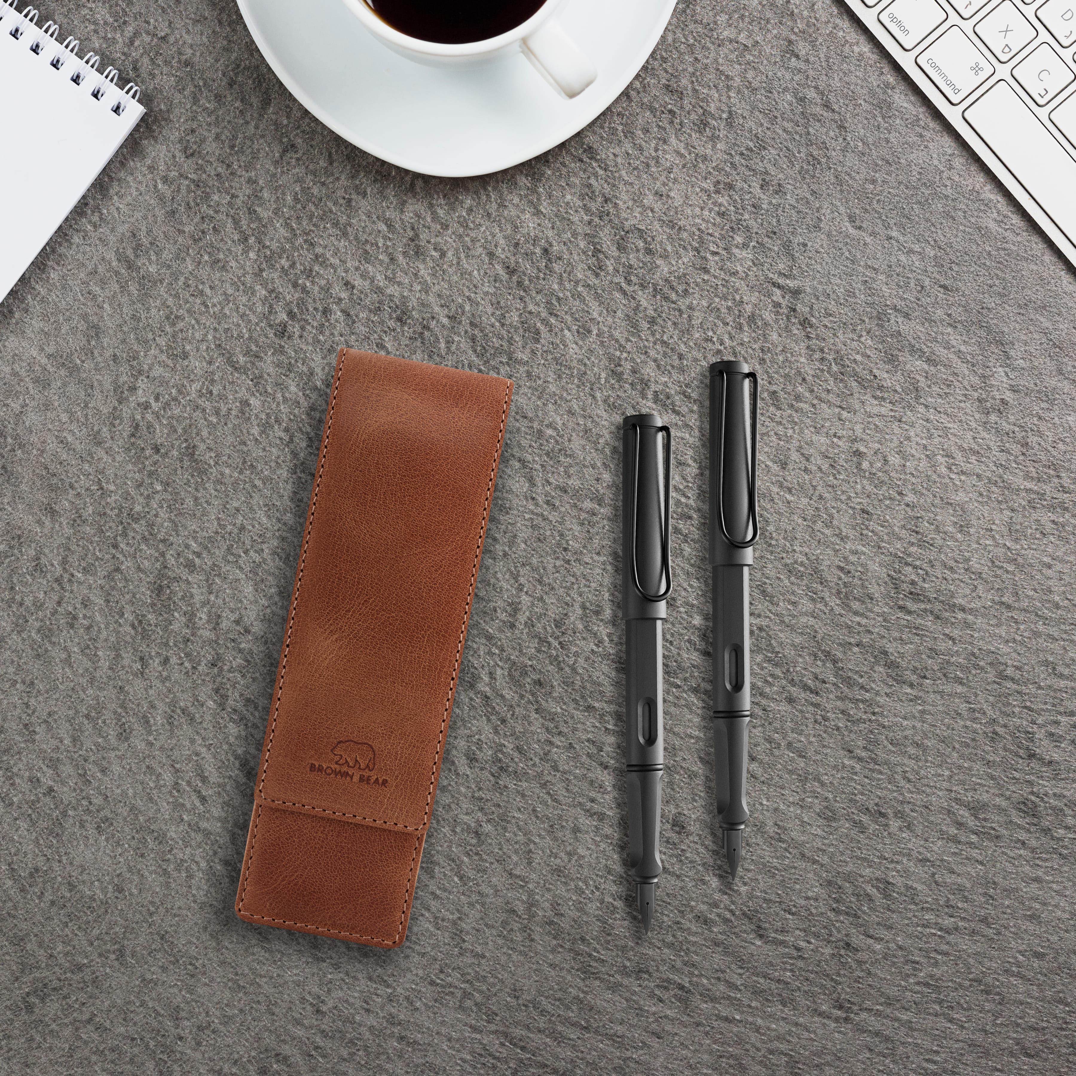 p>Dieses edle Schreibetui aus echtem Rindsleder ist die perfekte Wahl für alle, die Qualität und Stil schätzen. Es eignet sich ideal für Kugelschreiber, Füllfederhalter, Druckbleistifte oder Rollerball und wird in Europa handgefertigt.