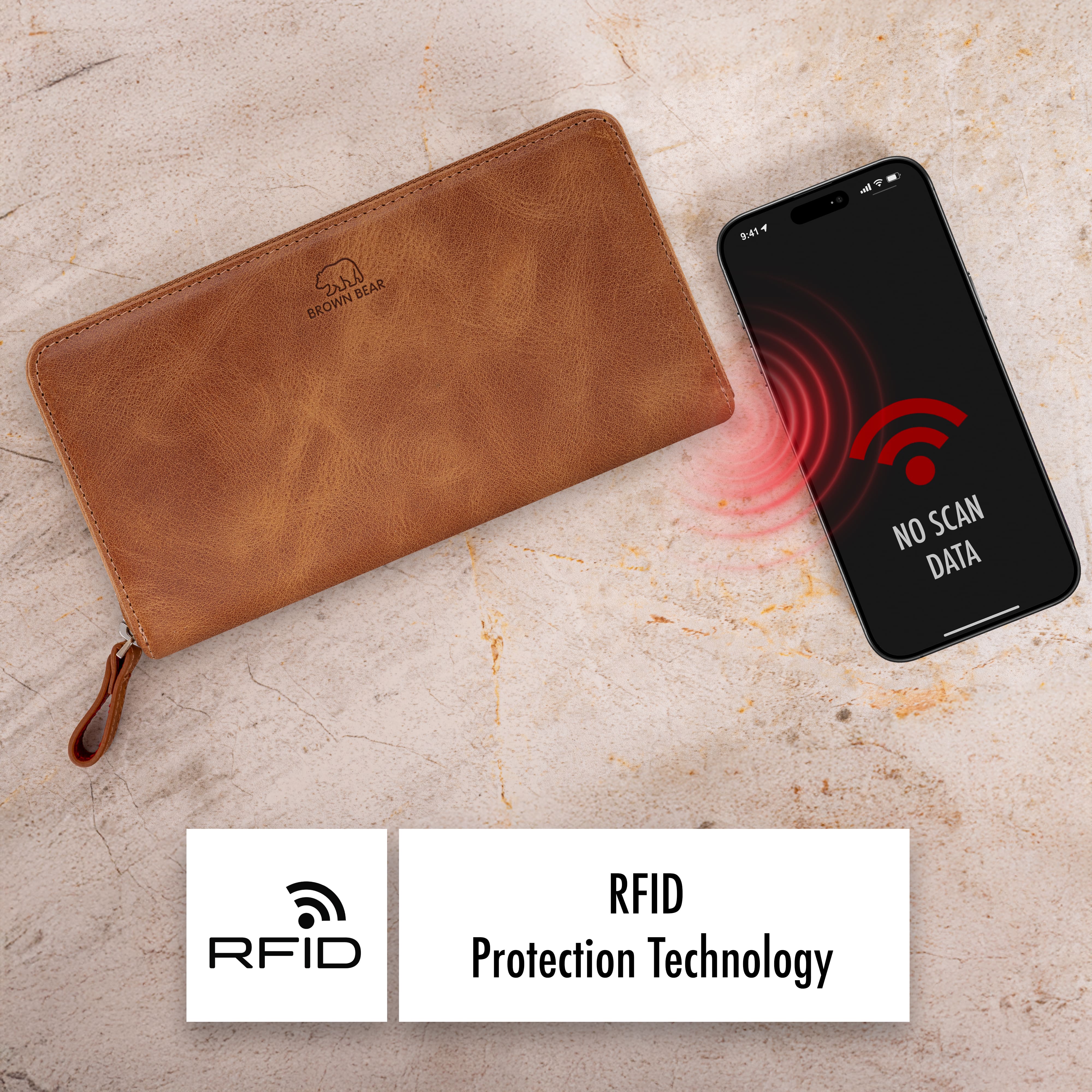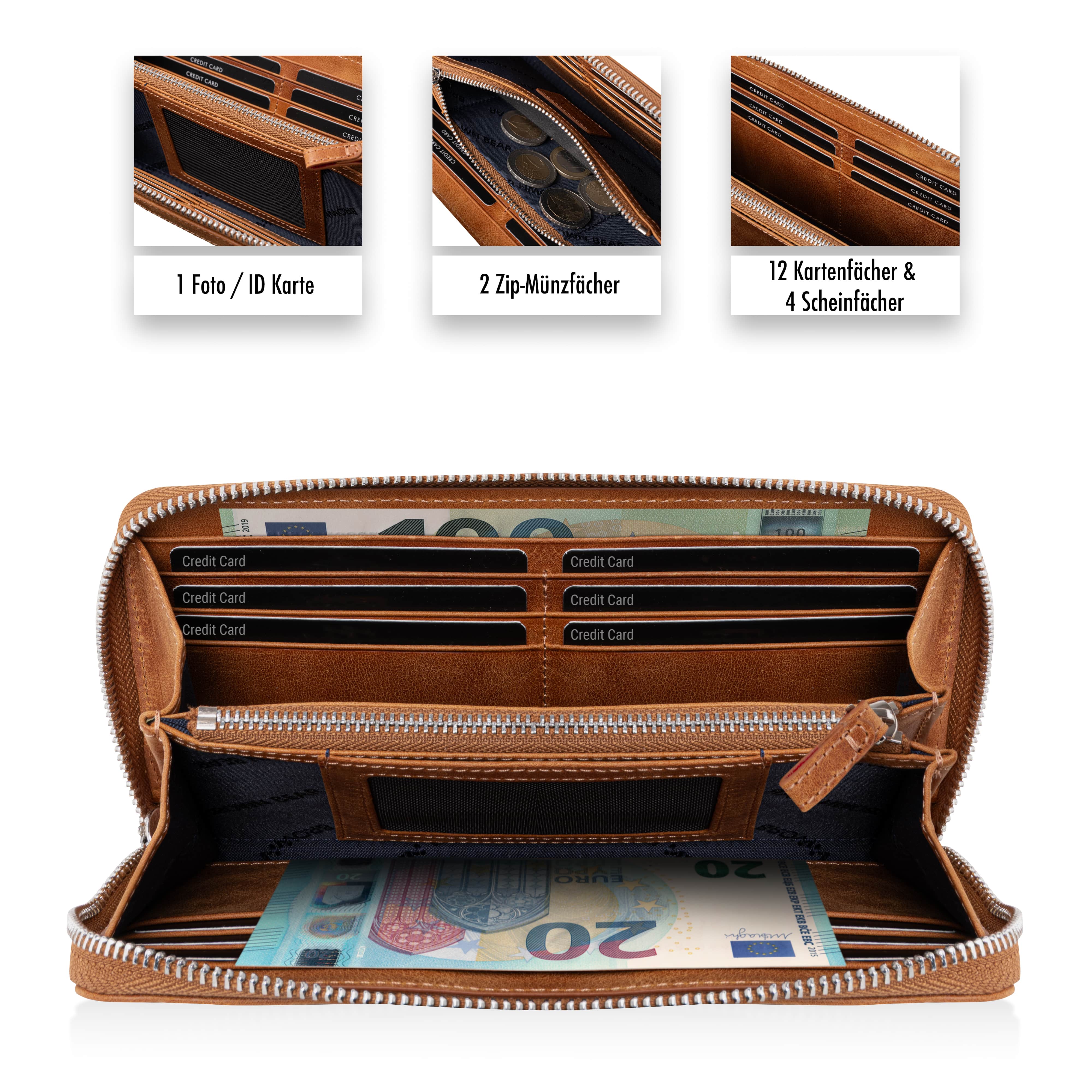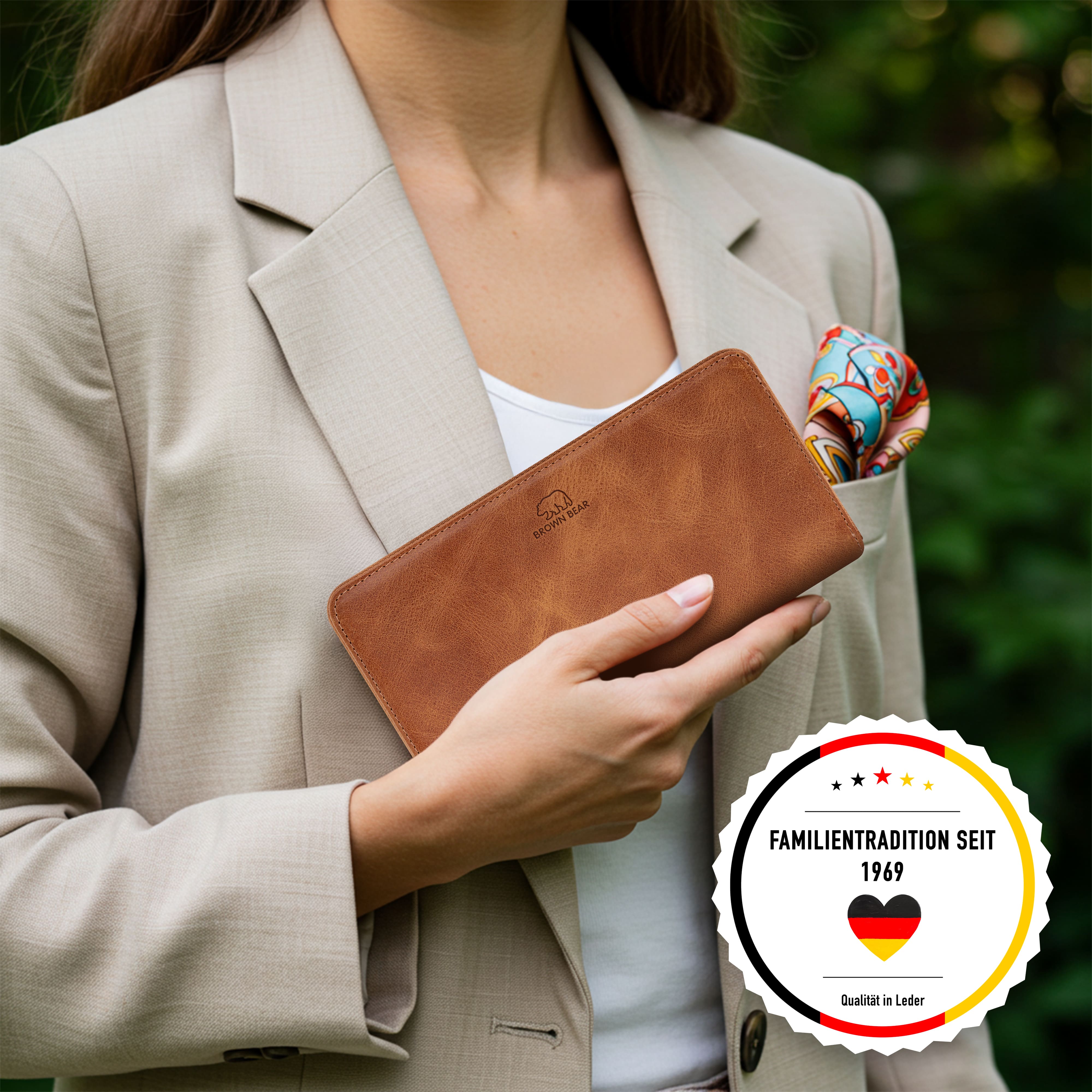 BROWN BEAR Damen Geldbörse – Echtleder trifft Funktion