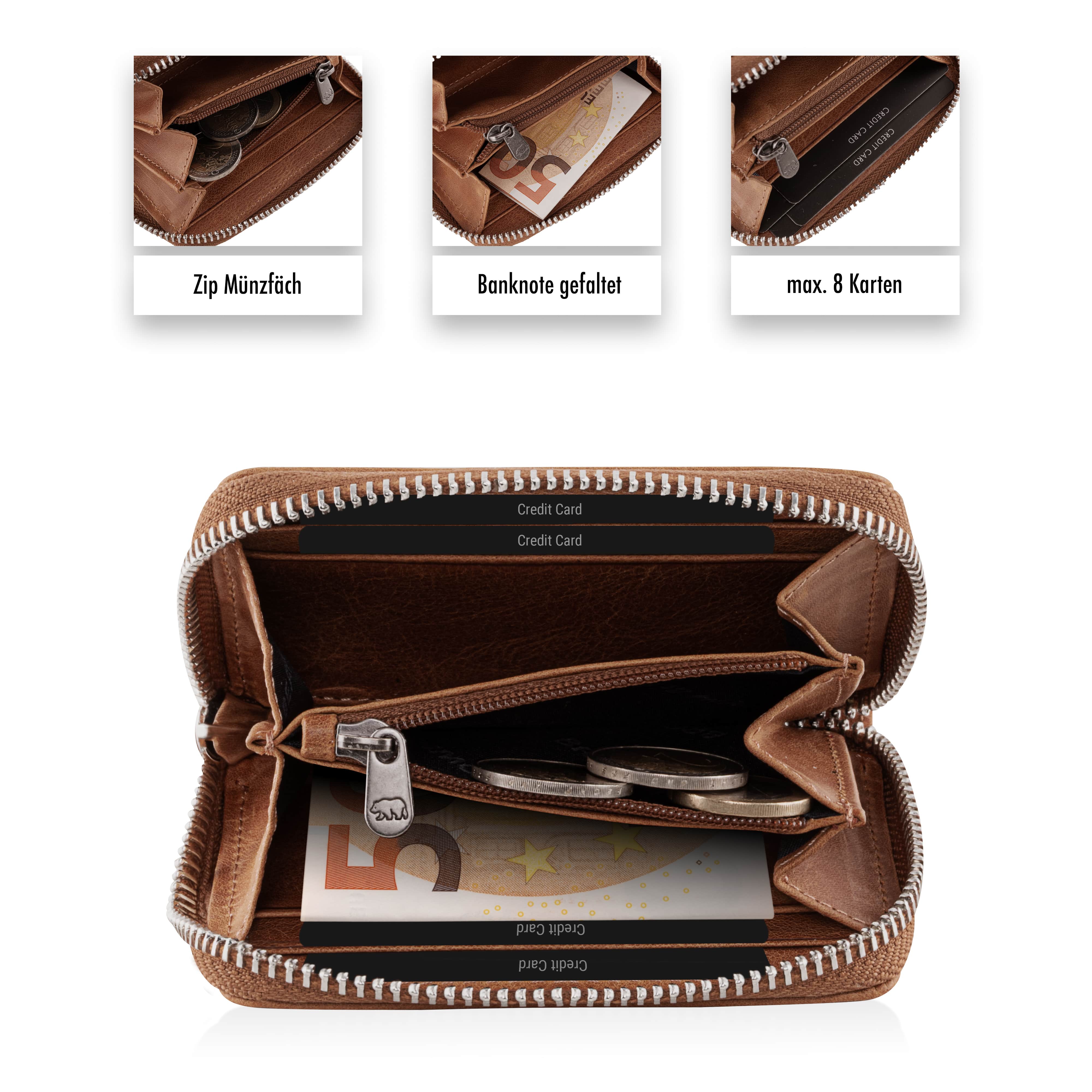 BROWN BEAR BB Kai – Slim Wallet aus Echtleder mit Reißverschluss
