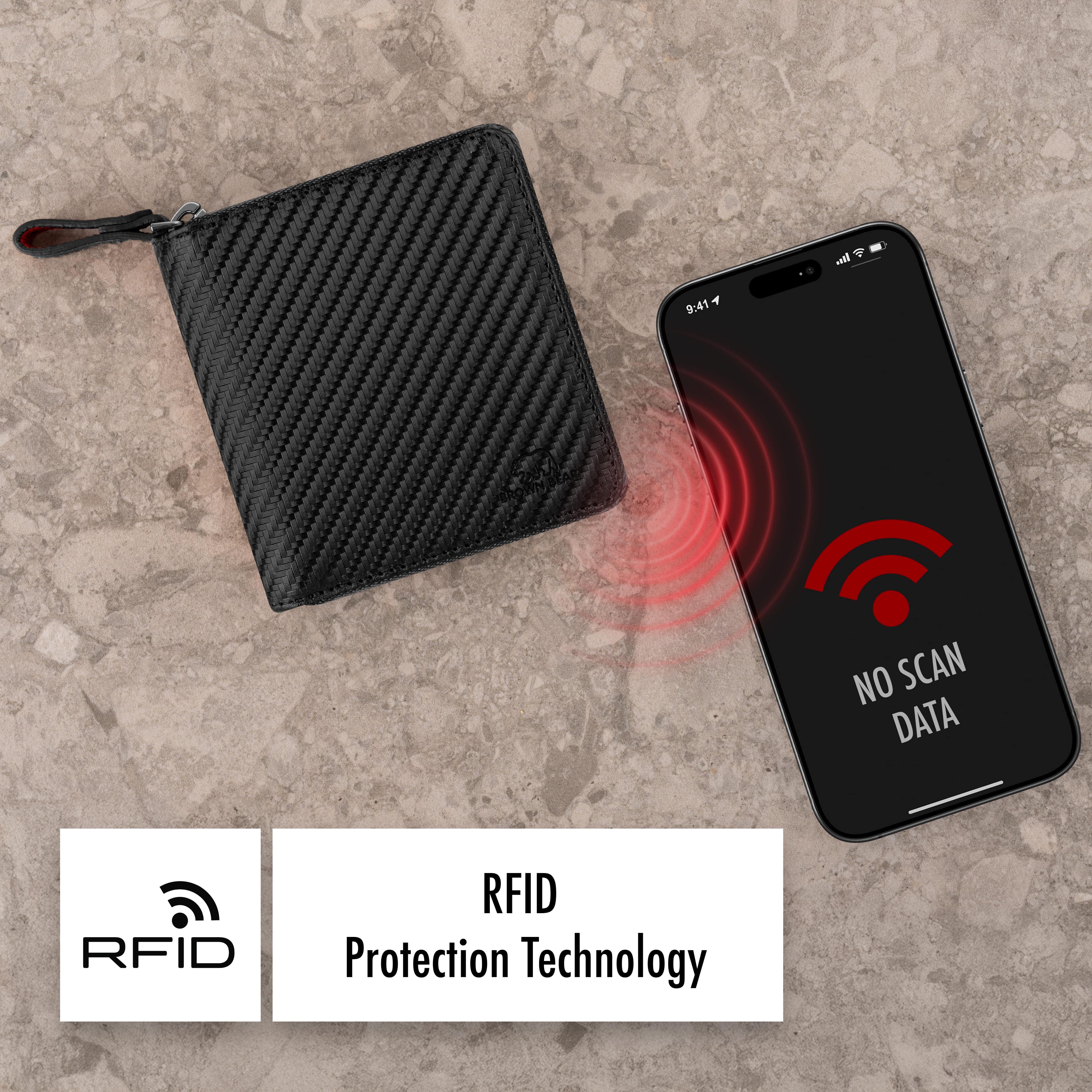 Ein integrierter RFID-Blocker schützt Kredit-, Bank- und Ausweiskarten zuverlässig vor unerlaubtem Auslesen. So bleiben Ihre persönlichen Daten sicher – egal, ob im Alltag, im Job oder auf Reisen.