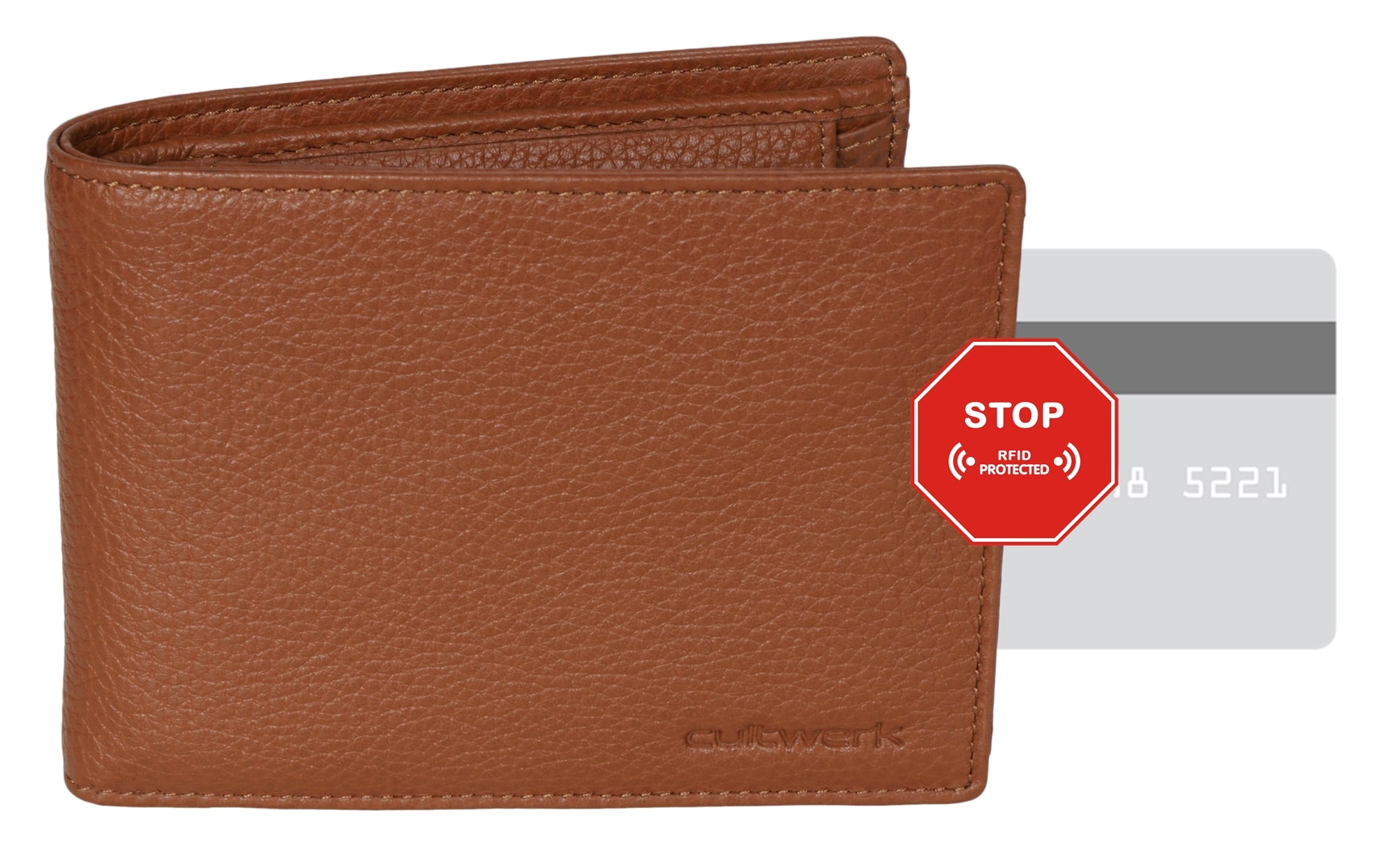 RFID-Schutz Portemonnaie für Herren aus echtem Rindsleder Farbe Braun Cognac